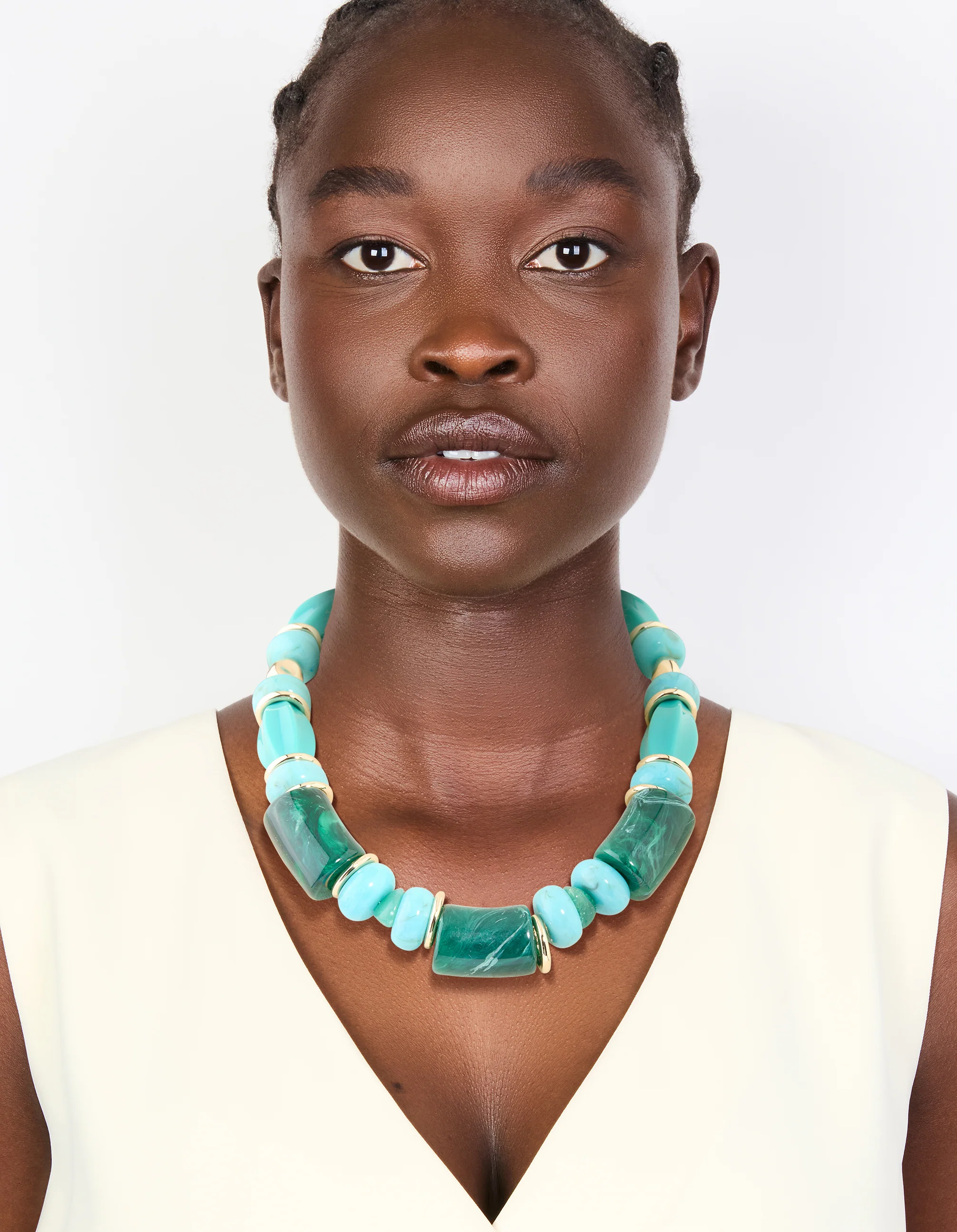 Aqua & Turquoise Acrylic Beaded Square & Round Chunky Necklace