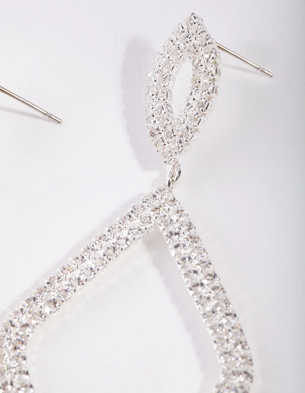 Statement earrings have become the easiest way to switch up any wardrobe. These diamond shaped silver-toned diamante earrings are the glam factor you've been looking for.