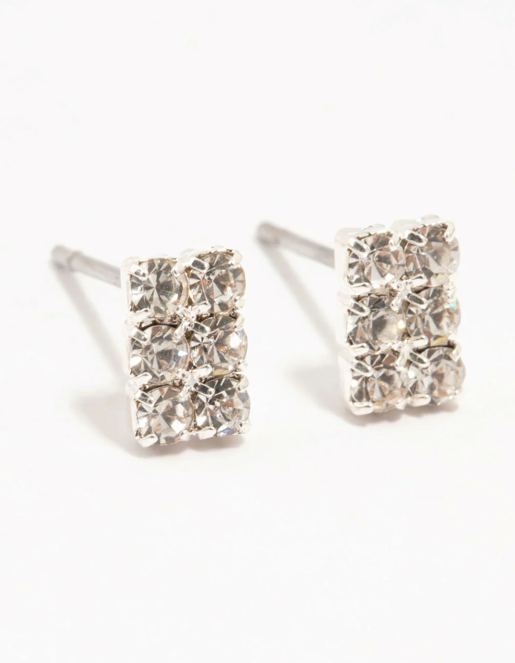 Dazzle with double the drama in these Diamante Cup Chain Multiple Stud Silver Earrings Set. With their diamante-studded sparkle and modern design, they'll elevate any look from basic to bejeweled.