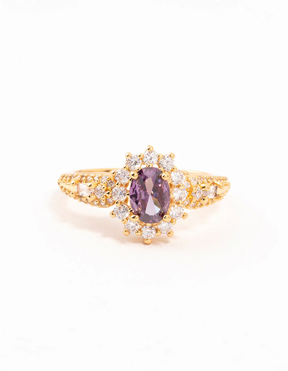 Gold Opulent Purple Cubic Zirconia Statement Ring