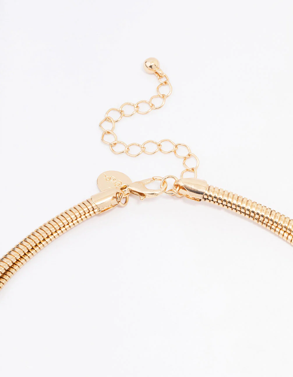 Add interest to your neckline with this chunky statement necklace. This necklace features a layered, snake chain design. Perfect for adding a bold and modern finish to your outfit!