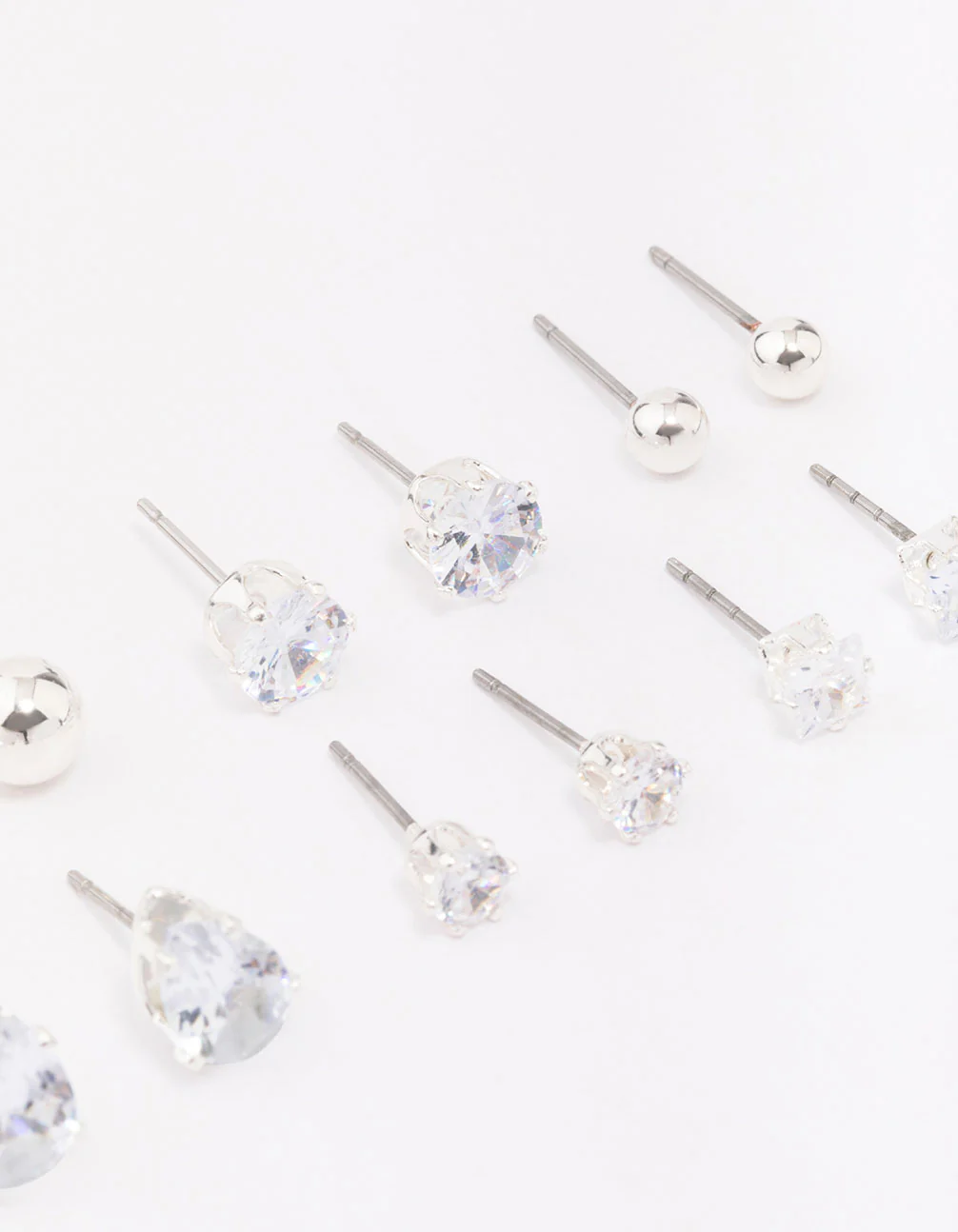 Create the ear stack of your dreams with this pack of silver-toned earrings. This earring pack includes eight sets of earrings, each adorned with varying diamantes for a touch of glamour. Perfect for styling together, or solo!