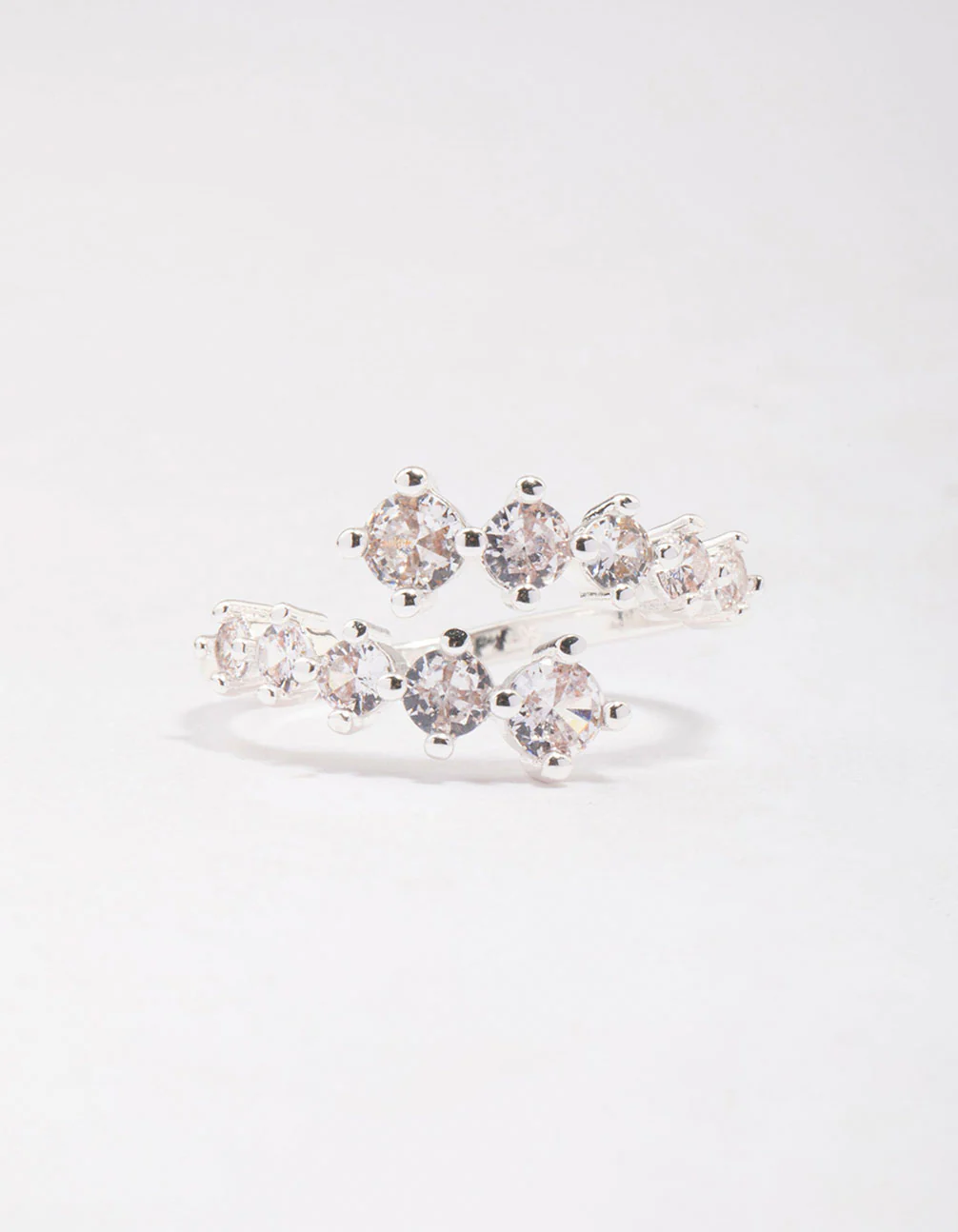 Silver Plated Graduating Cubic Zirconia Wrap Ring