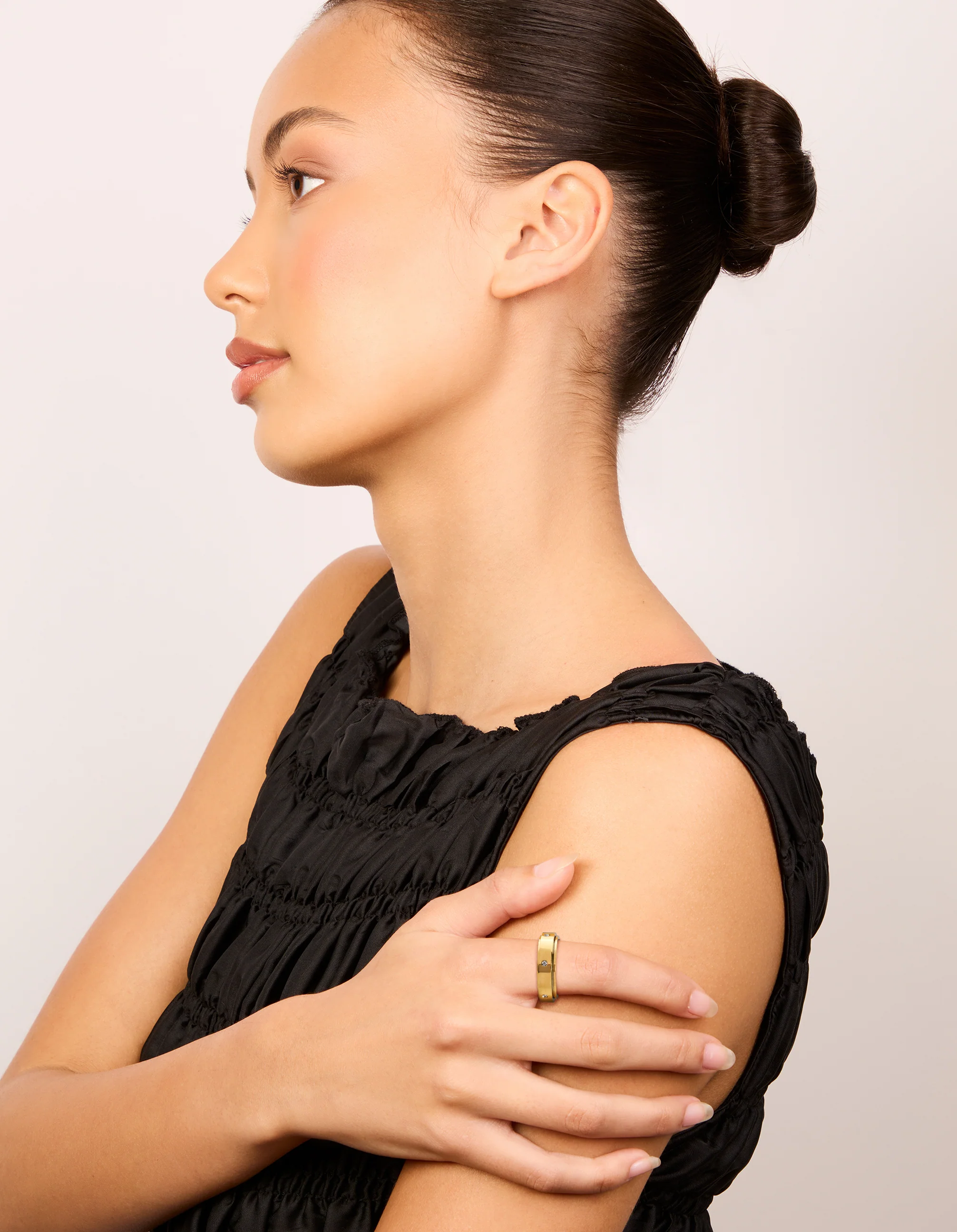 Looking for a ring that's as stylish as it is fun? This Waterproof Gold Plated Stainless Steel Cubic Zirconia Spinner Ring is here to brighten up your jewellery collection! This sleek band combines modern design with playful functionality—spin the outer layer for a subtle fidget moment whenever you need it. Crafted from durable stainless steel with a luxe gold plating, it's sweat, swim, and shower proof, making it perfect for everyday wear. The row of sparkling cubic zirconia crystals adds just the right amount of glam, making this spinner ring ideal for everything from casual outings to dressier occasions. Pair it with other gold bands for a stacked look or let it shine on its own—it's versatile, eye-catching, and ready to go wherever you do!
